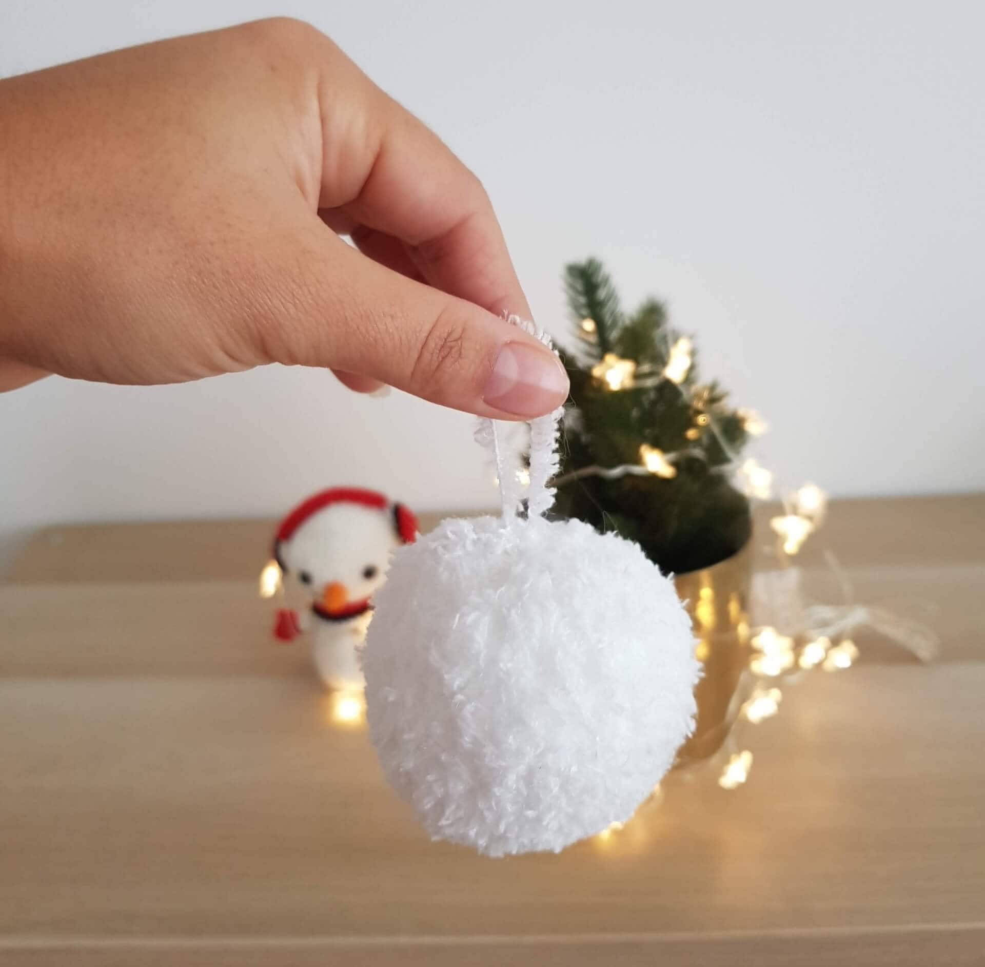 These are knitted snowballs ideal for indoor games, as you can see they can also be made into Christmas tree decorations.